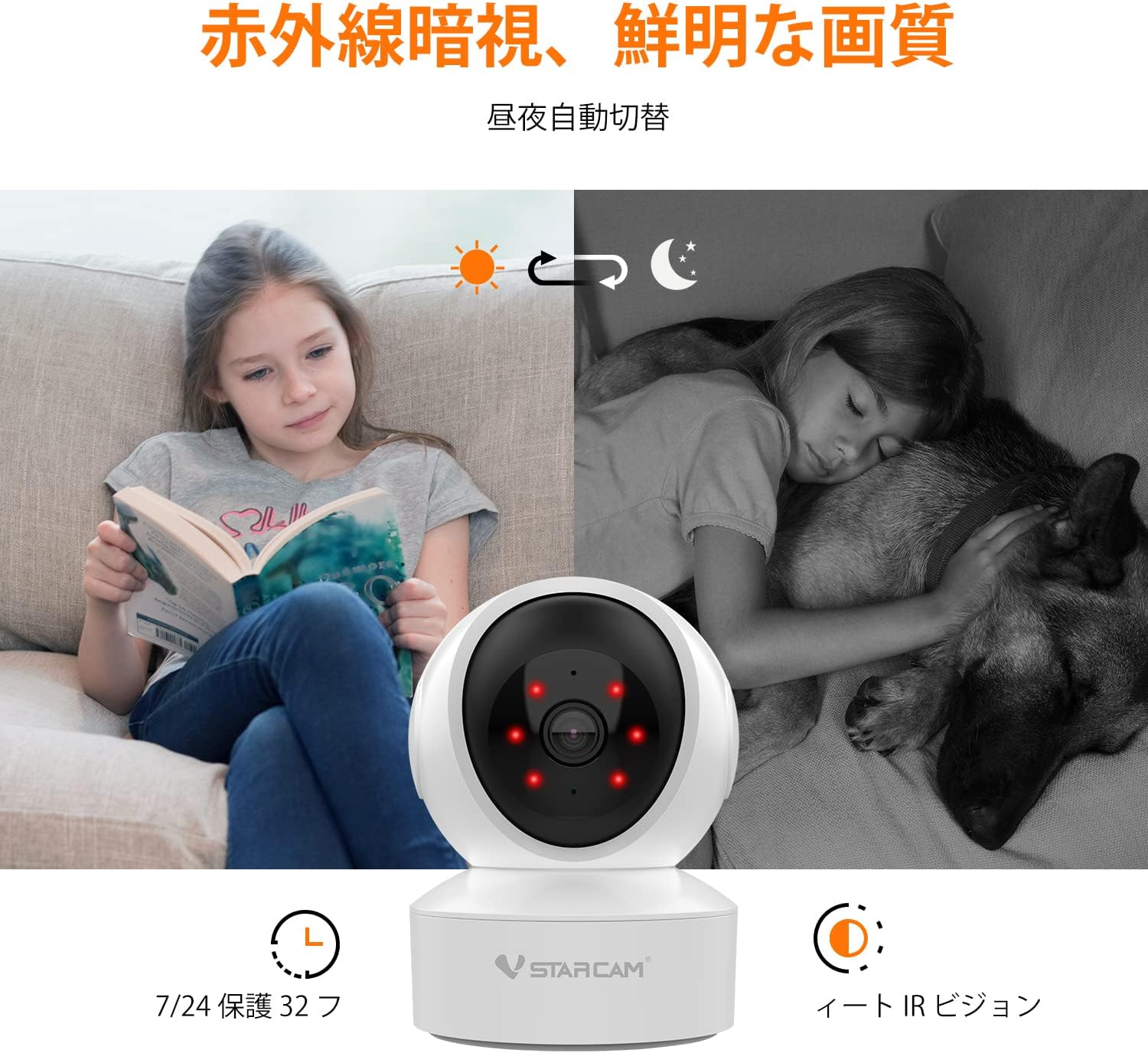 防犯カメラ ワイヤレス CS49 VStarcam 見守りカメラ 1080P フルHD WiFi対応 屋内監視カメラ 2.4GHz対応 ONVIF対応 PSE 技適 6ヶ月保証
