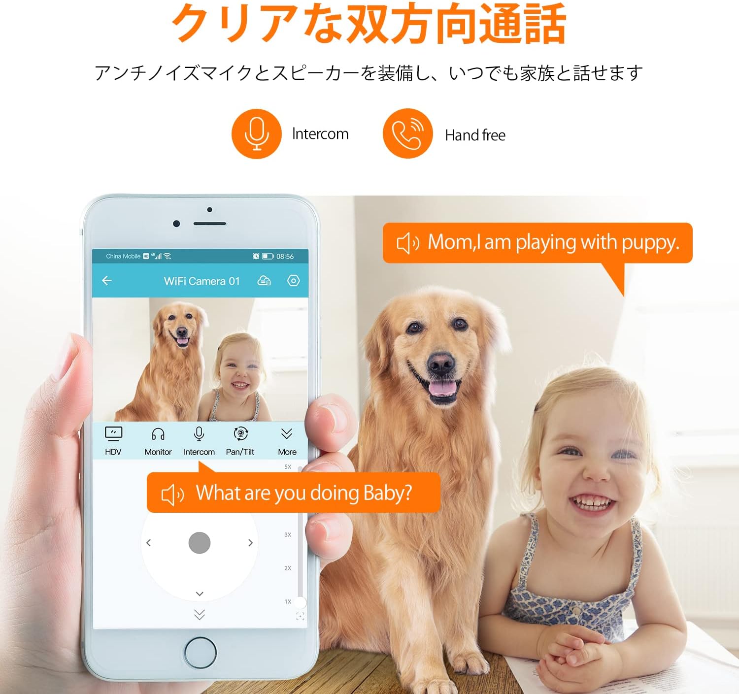 ペット 赤ちゃん 高齢者見守りカメラ 自動追跡 動体検知 ナイトビジョン 双方向通話