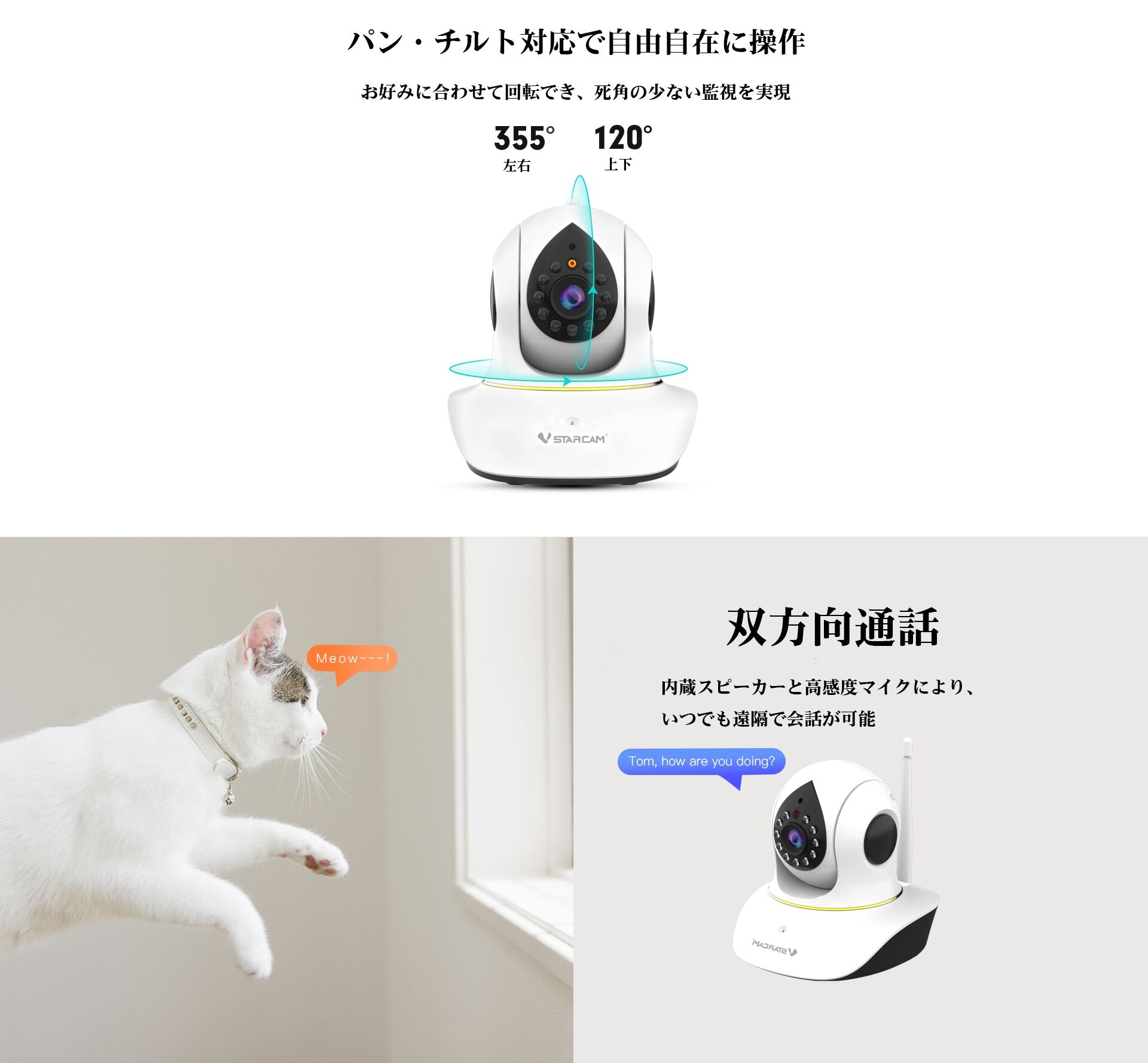 ・双方向通話でペットや家族とコミュニケーション可能