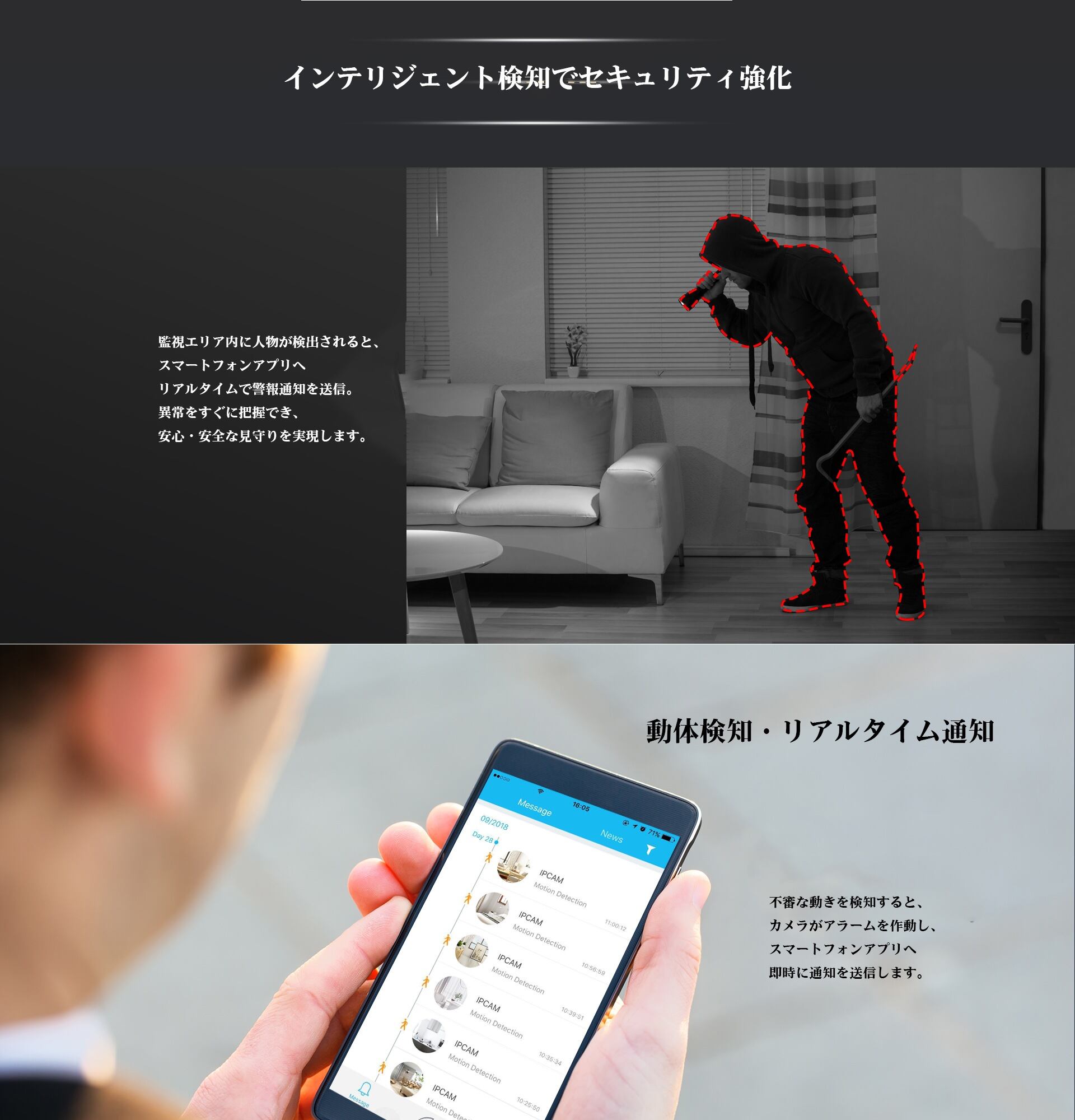 ・人物検知+動体検知で異常をリアルタイム通知