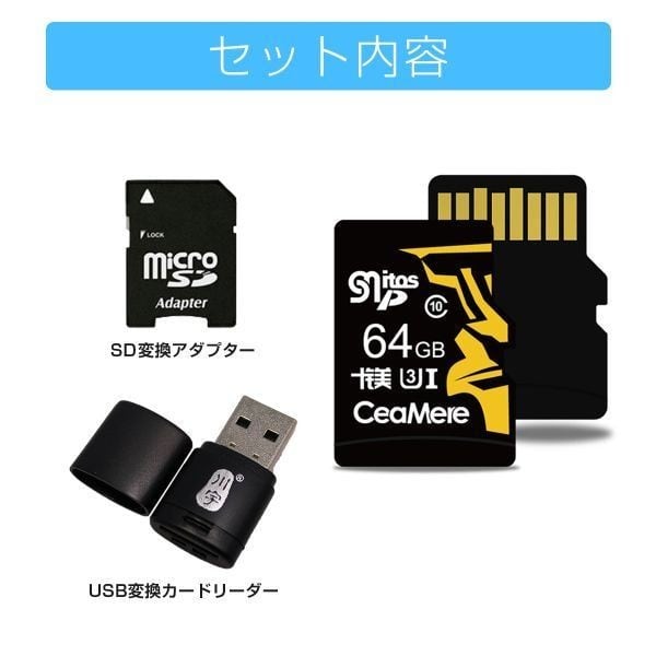 MicroSDカード 64GB UHS-I V30 超高速最大95MB SDカード変換アダプタ USBカードリーダー付き 6ヶ月保証「MICROSD-64G.D」