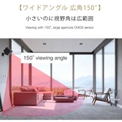 対角150°、防犯カメラとしては広範囲の視野角で、小さいながらも広範囲に記録します。