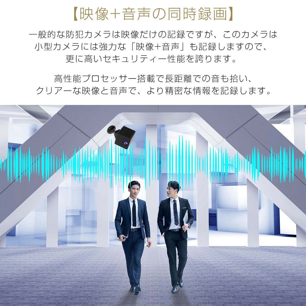 一般的な防犯カメラは映像だけの記録ですが、このカメラは映像+音声も記録しますので、更に高いセキュリティー性能を誇ります。